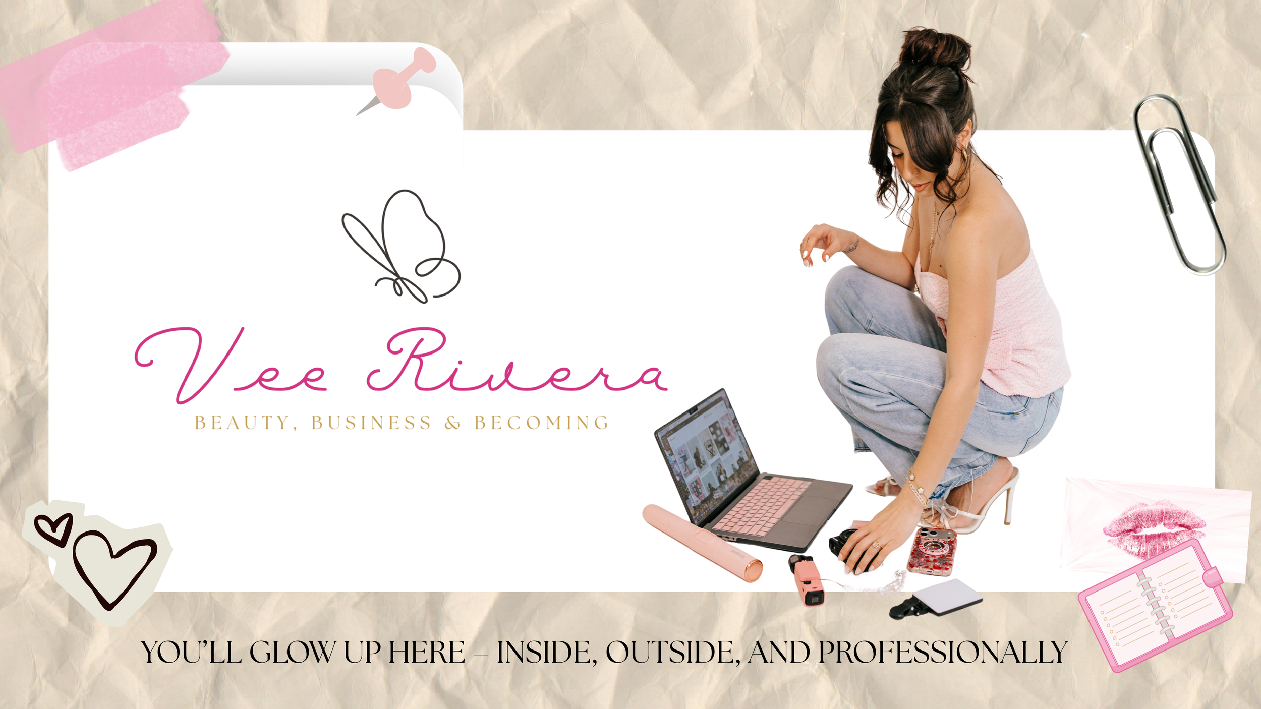 Hi, I’m Vee Rivera — a Latina lifestyle and beauty creator, podcast host, and digital entrepreneur passionate about helping women glow up in every area of their lives.